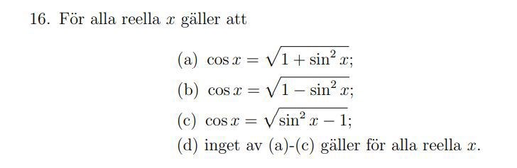 Kollar man på trigg ettan så gör man -(sinx)^2 och sen roten ur båda leden för att få cos ensamt och