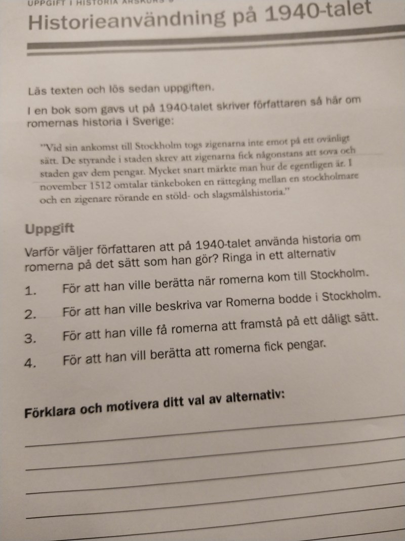 "1. För att han ville berätta när romerna kom till Stockholm."