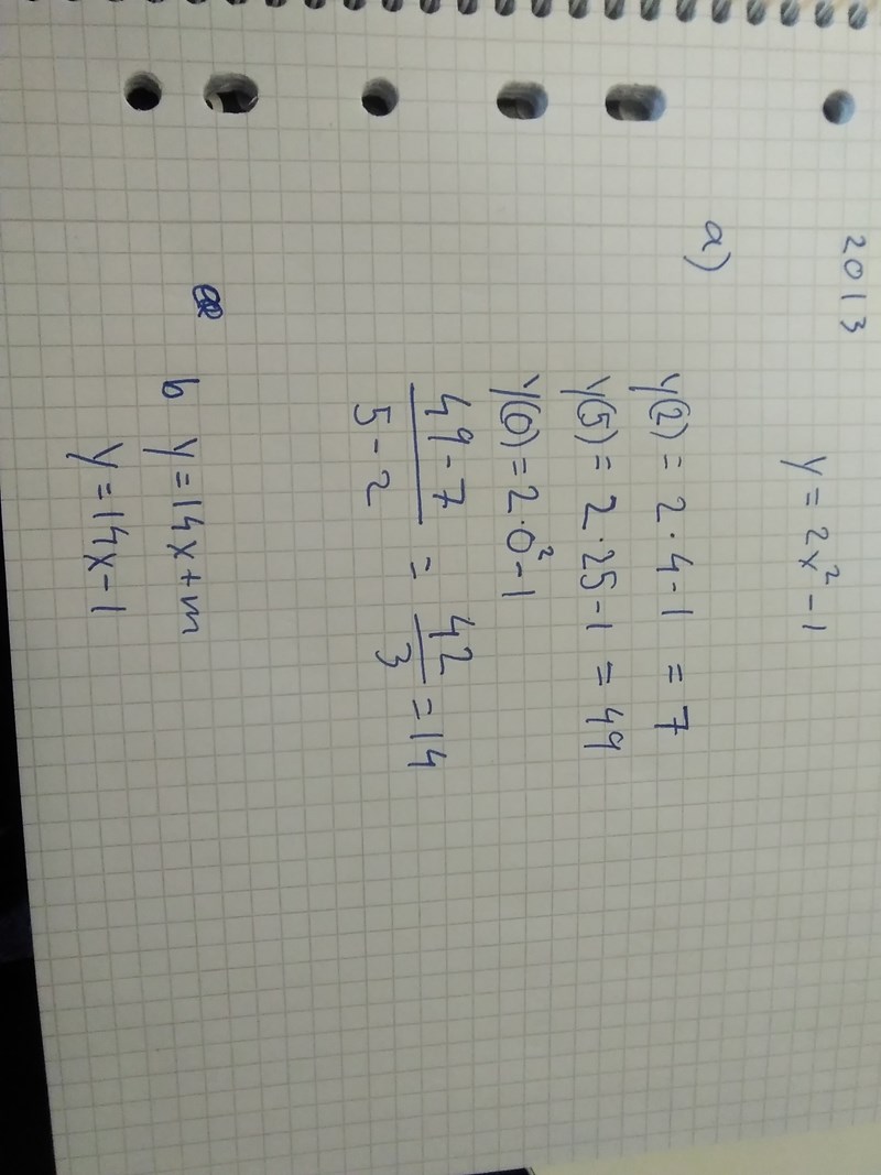 Sekanten ska gå igenom punkterna (2,y(2)) och (5, y(5)). Det är en rät linje med lutningen du hittat. :)