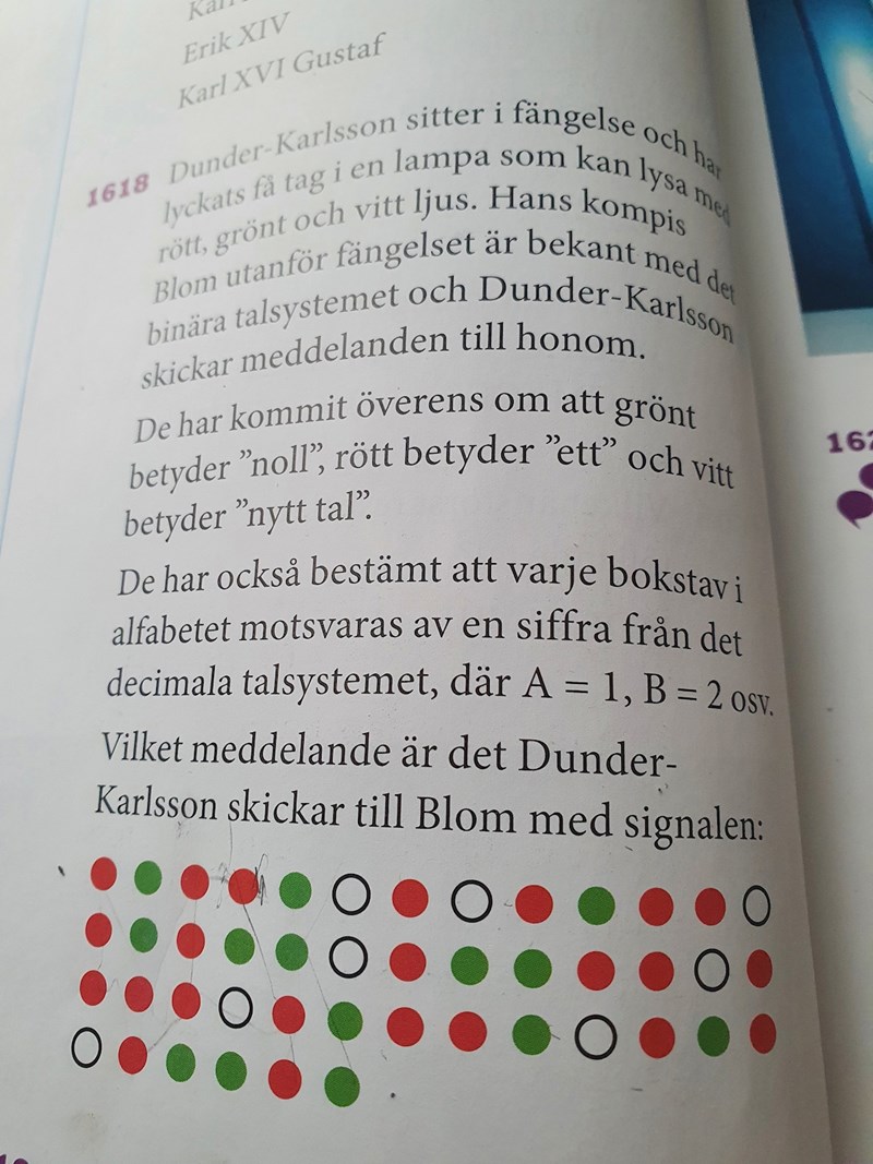 Jag har skrivit upp de binära talen men därefter fastnade jag.