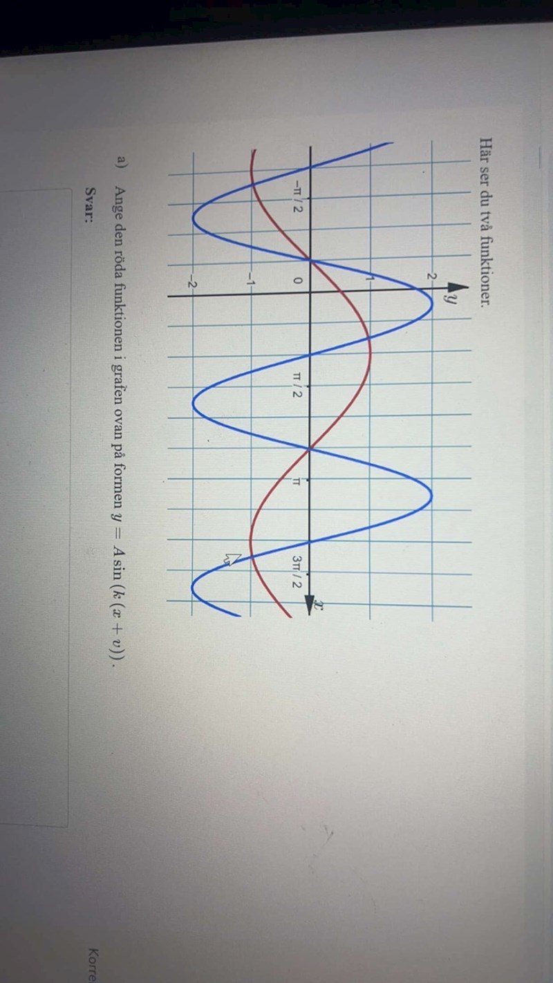 Periodiciteten för röda kurvan ser ut att vara 2 π.  Alltså bör k = 1.