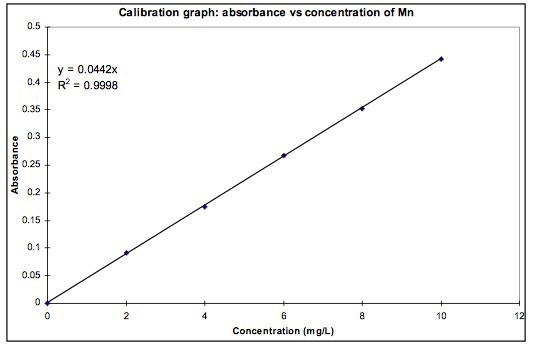 Regressionslinjen y=0,0442x visar sambandet mellan absorbans (y) och koncentration (x) i mg/l. Eftersom du vet absorbansen kan du via ekvationen räkna ut vilken koncentration det motsvarar hos det utspädda provet. När du vet den koncentrationen kan du beräkna ursprungskoncentrationen.