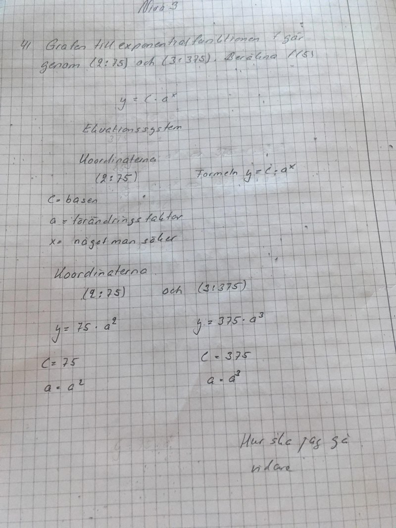 den ena ekvationen blir 75=Ca^2 och den andra blir 375=Ca^3