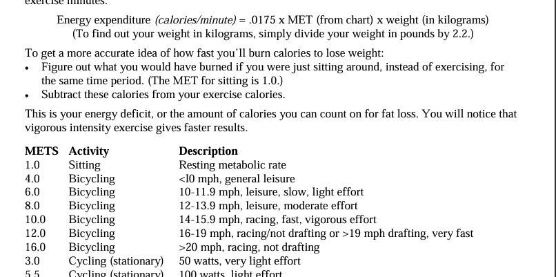 Bra tanke ändå :) , jag tror uppgiften handlar om att nörda ned sig i olika grejer. Så jag har tänkt o beräkna hur många kalorier jag bränner på olika sätt. Jag fann denna studien rätt intressant: Microsoft Word - EstExExp_SM.doc