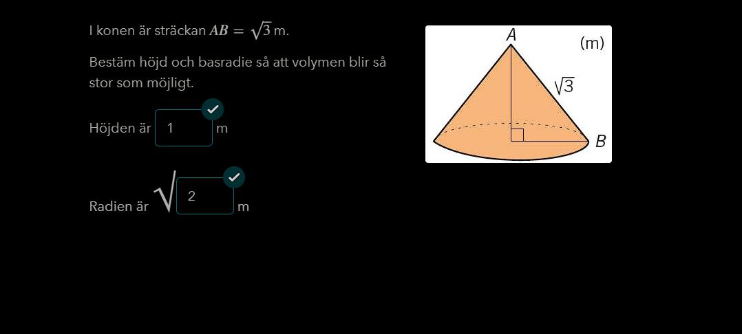 Pröva att lösa ut höjden h istället för basradien r till att börja med.