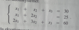 Om du subtraherar rad 1 från rad 3 får du att , vilket motsäger rad 2. Så systemet saknar lösningar.