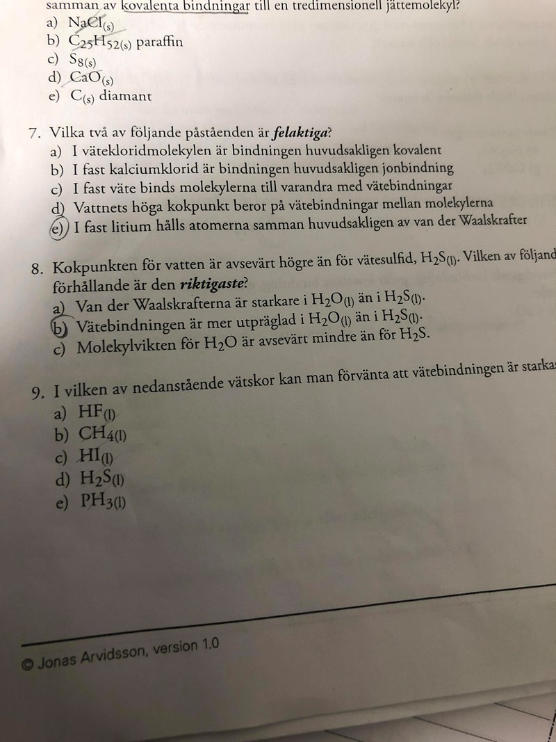 Jag svarade att HF är det enda ämnet som har vätebindning. Stämmer det?