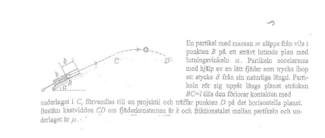 Friktionskraft - µ, fjäderkraft -kσ (osäker på formeln), mg, normalkraften (vet inte var denna skulle vara i så fall då jag inte har någon uppfattning om hur partikeln ligger mot underlaget. Någonstans ska jag få in accelerationen i detta också.