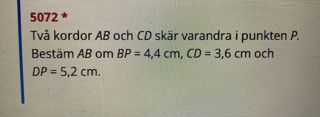 Bestäm AB om BP = 4,4 cm, CD = 3,6 cm och DP = 5,2 cm.
