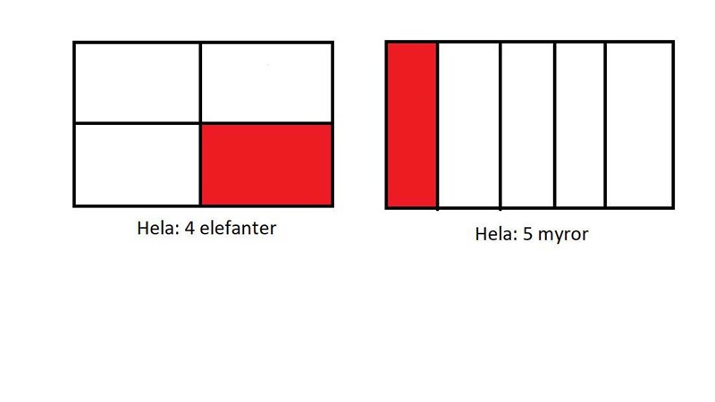Frågan : Hur många färre är fyra elefanter än fem myror? Har inte samma svar eftersom vi då jämför med myrorna