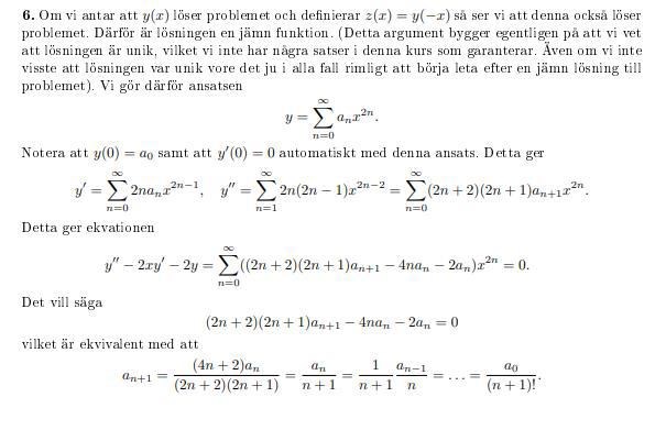 Jag är med på det där med entydighet, men hur ser du att z löser ekvationen? Jag försökte göra variabelbyte och får då z''+2xz'-2z=0, och det är ju en ny ekvation, som borde ha andra lösningar?