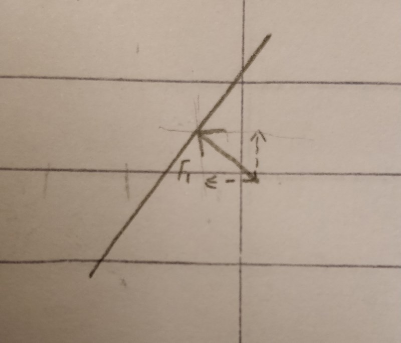 I figur b) Ser vi en vägg som lutar 45 grader mot horisontalplanet. Vi vill av någon anledning veta kraftkomposanten vinkelrät mot det "sneda taket", FN F_N , samt kraftkomposanten parallell med taket, Fp F_p .