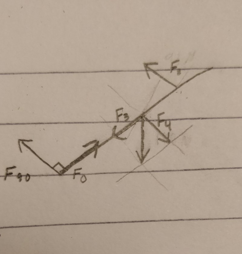 Sedan är F90 och F0 två komposanter till en kraft du ska namnge och rita. Det är den kraften som är stödkraften från marken.