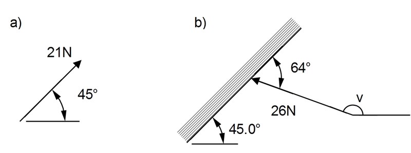 Fy=21N·sin(45°)15N F_y=21\mathrm{N}\cdot \sin(45^{\circ})\approx 15\mathrm{N}