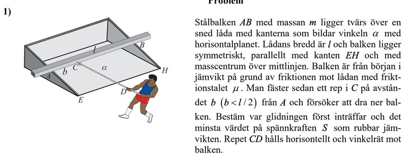 Hinner inte räkna på uppgiften men ska det vara -S sin(a)(l-b) istället för +? eftersom Sz pekar upp?