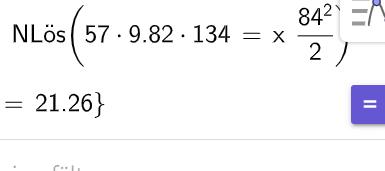 men då förstår jag inte längre. För den resulterande kraften är ju Fres=k*y. Den borde bli 21,2*84=1780. Och för att det ska bli den resulterande kraften borträknat från tyngdkraften blir ju fjäderkraften 1780+57*9.82 och det är 2340. Men det säger inte facit? Hur tänker jag fel????
