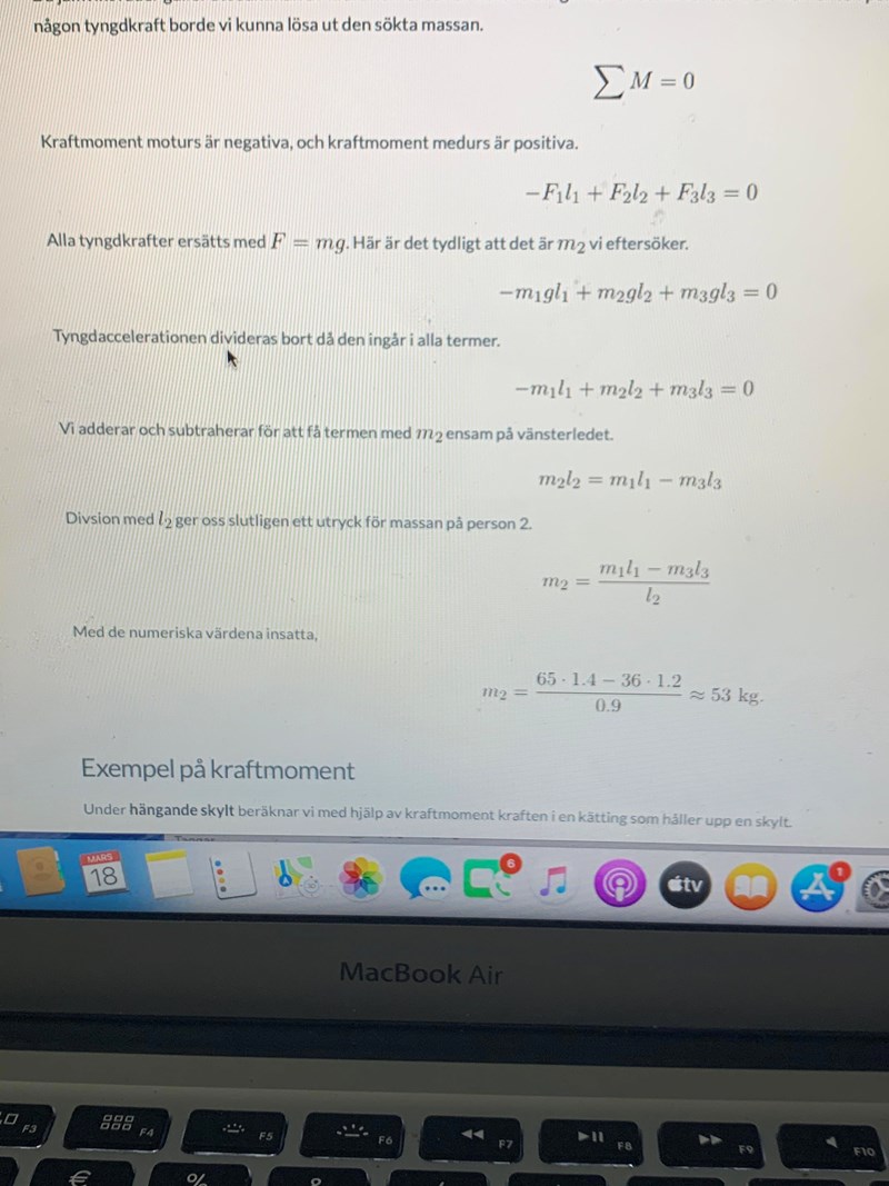 Men man vet ju inte från början att F1=72 utan att F1=mg och värdet på m.