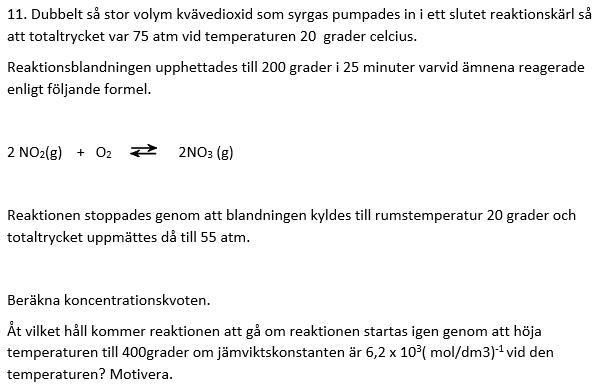 Från början var det 0,09 mol gas i behållaren (jag förutsätter att du har räknat rätt). Hur många mol gas finns det totalt efter reaktionen, när trycket är 55 atm i stället för 75 atm vid för övrigt lika betingelser?