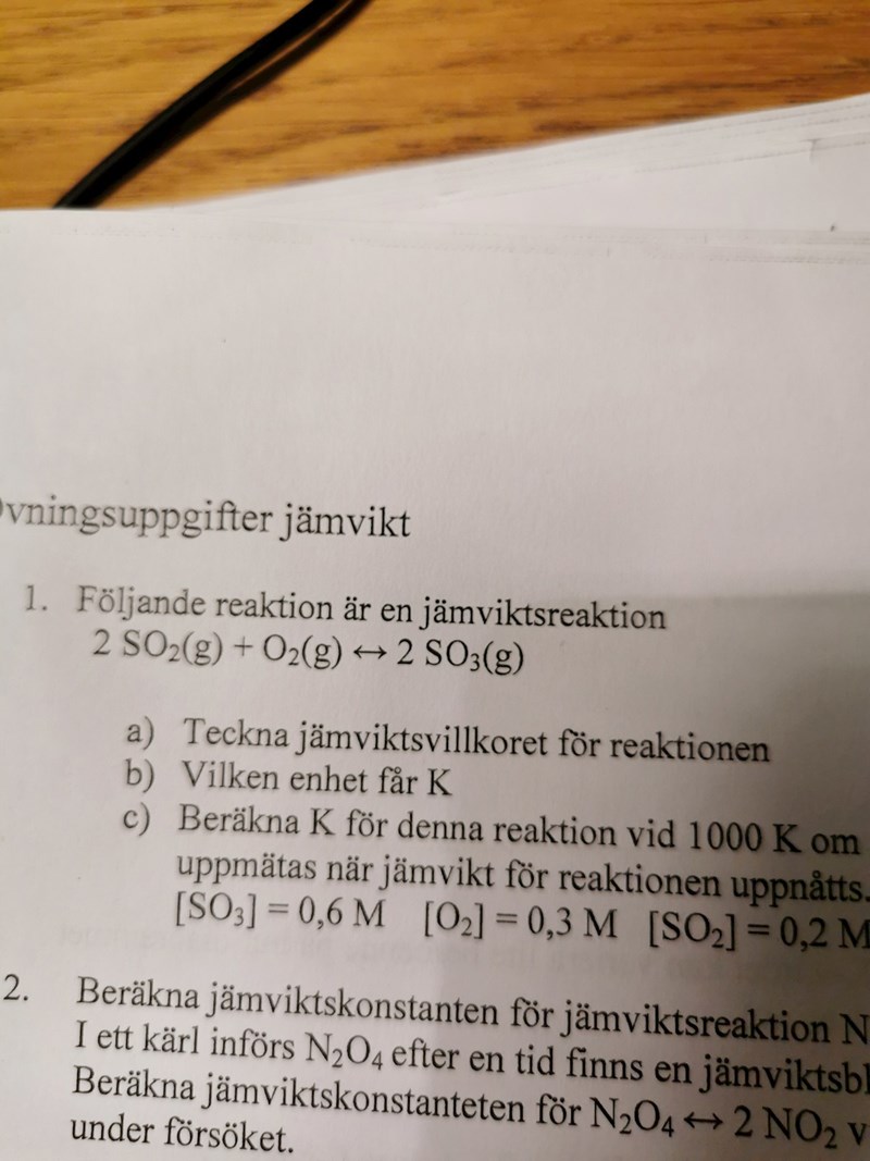 Du har jämnviktskoncentrationerna, stoppa in dom i ditt svar i a uppgiften