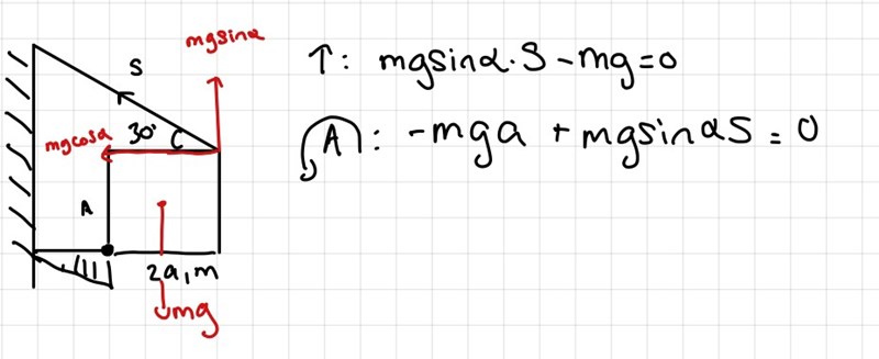 Det kanske räcker med att bestämma momentjämvikt kring gångjärnet.