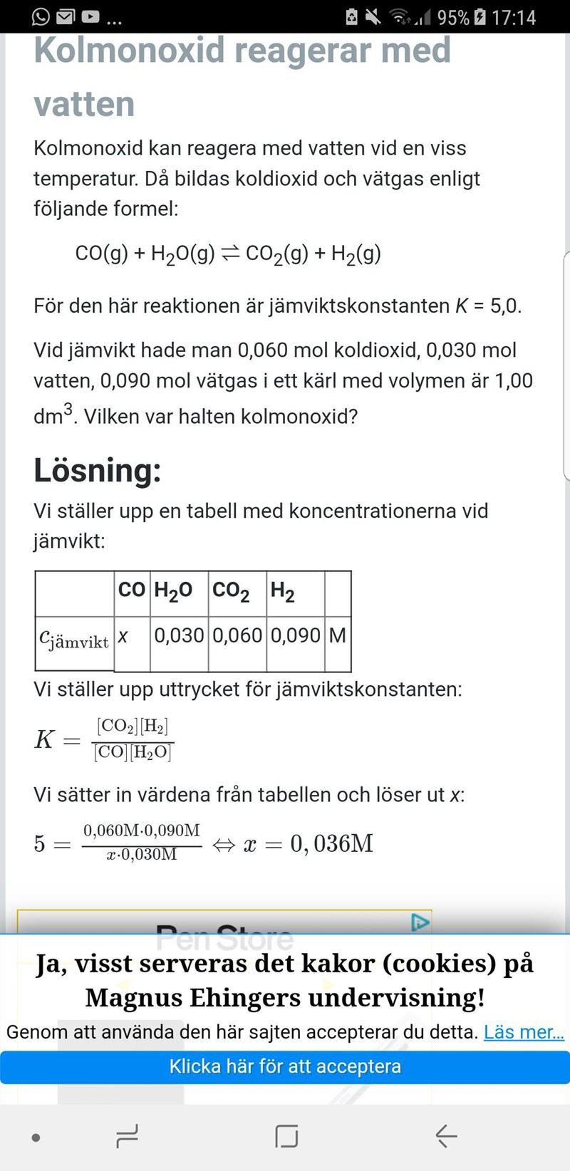 Man hade inte bara kolmonoxid och vatten från början, utan även olika mängd av produkterna. Det där är en rätt berömd reaktion som kallas för skiftesreaktionen. Man använder den ofta för att justera förhållandet mellan mängden kolmonoxid och vätgas när man producerar något som kallas för syntesgas. Då har man en blandning som innehåller alla fyra ämnen samt förskjuter jämvikten så att mer eller mindre av något ämne ska bildas.