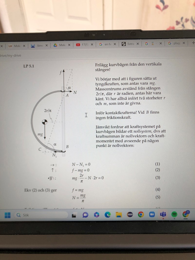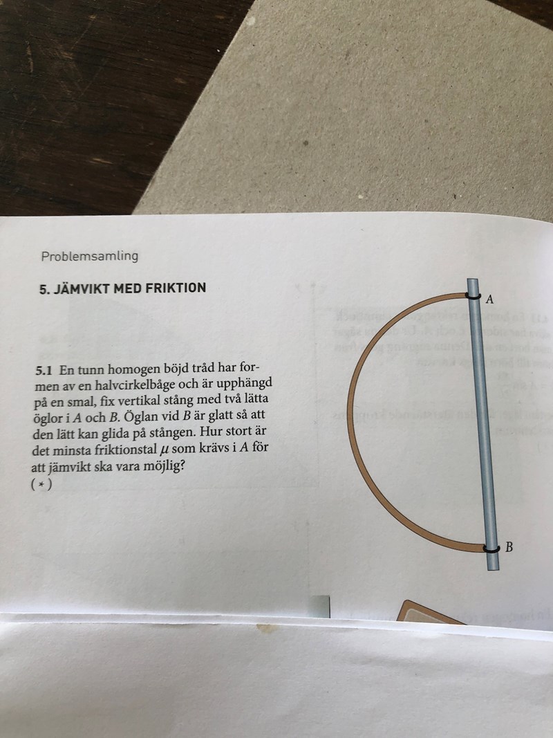 Hej! Jag har precis börjat räknar på jämnvikt med friktion. Nu har jag kommit till en uppgift där jag inte förstår lösningens friläggning. Jag förstår inte varför de har ritat normal krafterna åt olika håll.