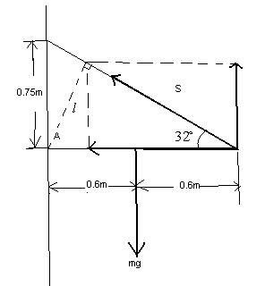 S = M = mg x l 3.2 x 9.82 x 0.6 = 19NM