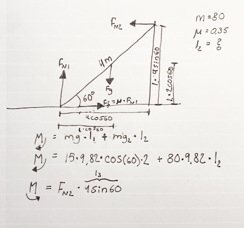 Vet verkligen inte hur jag ska börja. Har ritat ut krafterna som verkar på stegen.