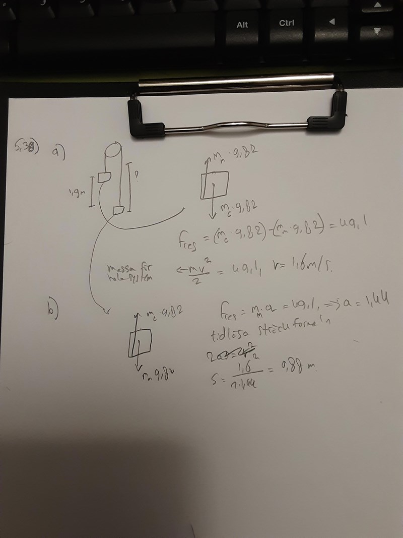 PS. Du har glömt att skriva in längden i mv2/2 = s x F . Men du ser ut att ha räknat med den ändå.