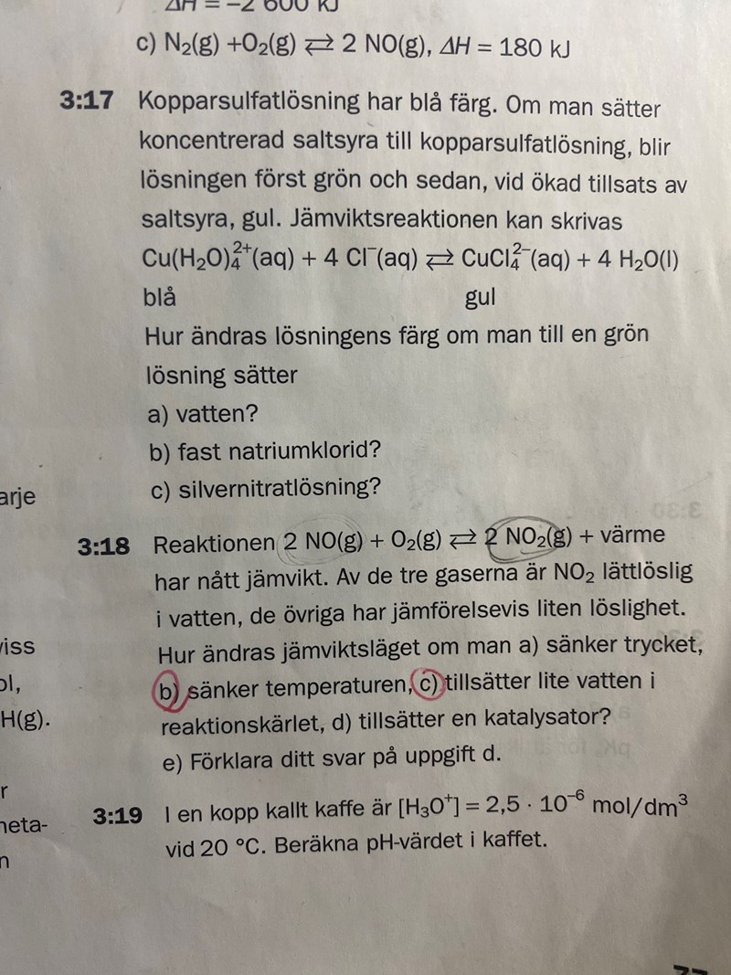 b) Hur ändras koncentrationen av kloridjoner när natriumklorid löses i lösningen? Åt vilket håll ändras jämvikten?