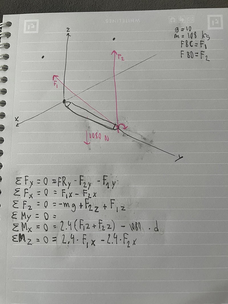 har kört fast lite här. Jag har satt upp 6 ektavioner i 3d för båda kraft och moment. Men jag har endast en kraft given i uppgiten, och hur kan jag komma vidare med det?