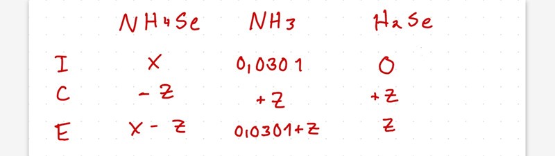 Jag vet inte hur jag ska ta reda på koncentrationen/substansmängden NH4HSe, har försökt med ICE tabell.