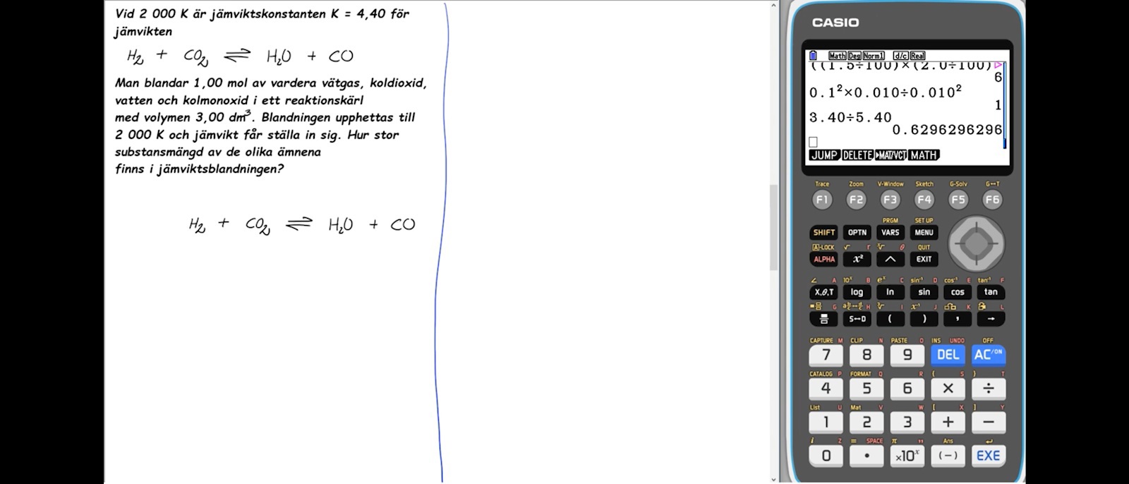 Jag chansade och antog att reaktionen skulle gå åt höger. Dock undrar jag hur man kan veta vilket håll reaktionen går mot. Antar att man räknar på reaktionskvoten då, gör man det först eller efter man räknat ut hur mycket HL och VL ökat och minskat i substansmängd?