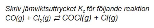 Nej, det går inte att beräkna jämviktskonstanten, men det är det ingen som begär heller. Däremot är det fullt möjligt att göra det som står i uppgiften, nämligen att skriva upp hur uttrycket för jämviktskonstanten för den aktuella reaktionen ser ut.