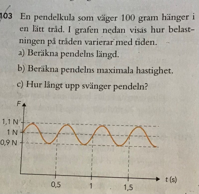 Jag förstår att snörkraften ska vara störst i jämviktsläget för pendeln, i grafen är den största kraften 1,1 N och därav används den. Men om jag utgår ifrån vad jag har lärt mig i matte så ska jämviktsläget för trigonometriska funktioner vara precis i mitten (där kraften är 1 N) vilket det inte är i denna uppgift. Är diagrammet för pendeln ett undantag?