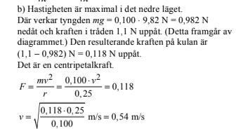 Jag tolkade grafen fel. 0,9 motsvarar ju de båda vändlägena, och 1,1 är när kulan är längst ner.