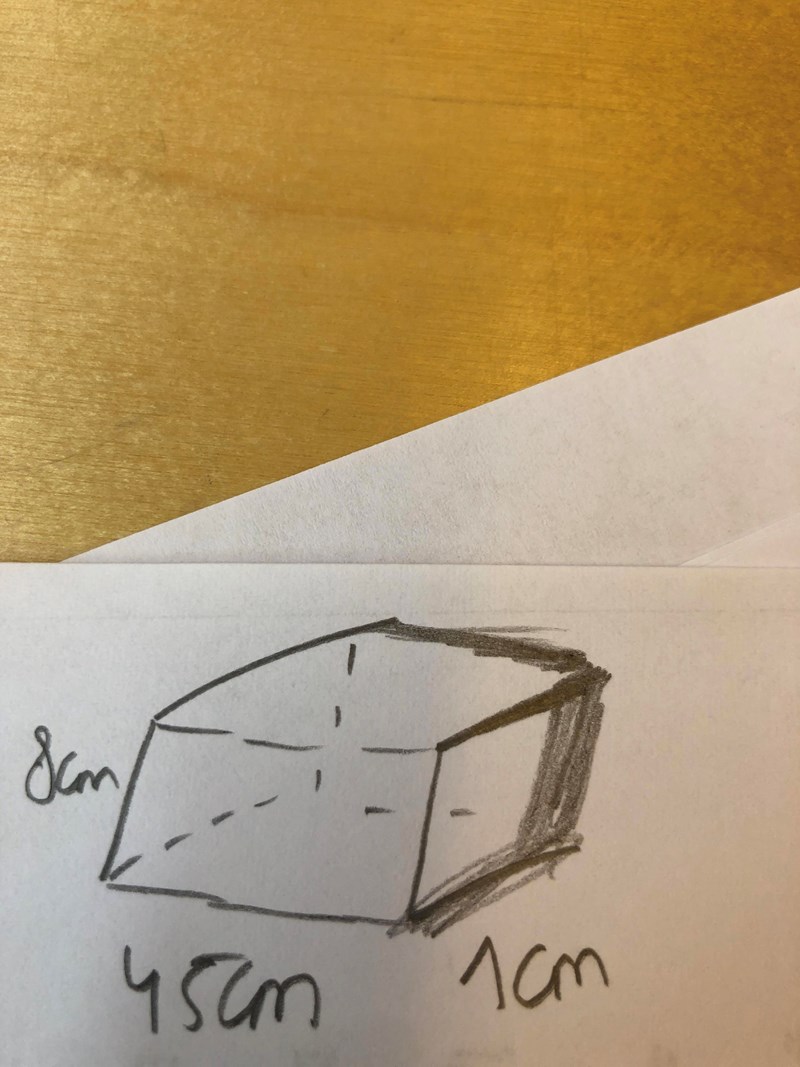 Om vi klipper upp järnröret och viker ut det så blir det nästan ett rätblock.