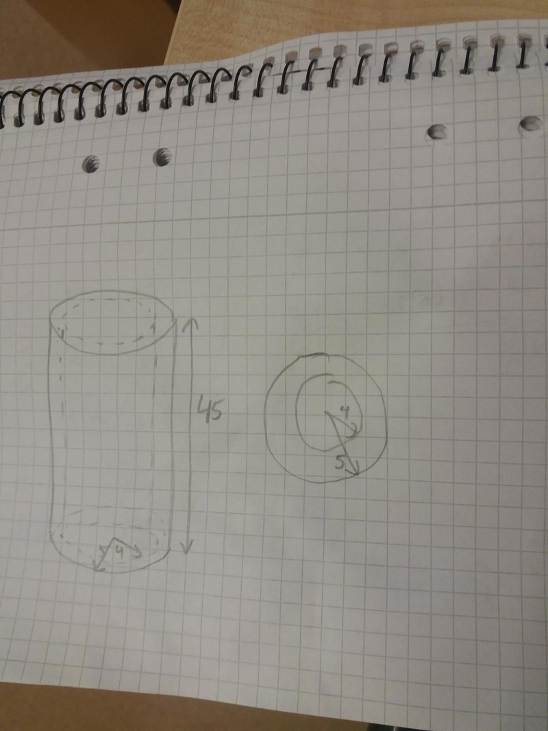Jag fattar inte hur jag ska rita den. Järnröret är en cylinder. Om jag beräknar mantelarean*höjden -> begränsingsarean av cylinder -> som då blir en rektangeln