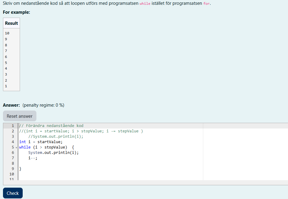 Ja det har jag men inte i while loopar. Nu har jag fått en liknande ny uppgift som jag jobbar på och kommit en bit. Här skall jag antagligen också använda en if/else där den ena decrementerar talet med 1 och den andra decrementerar talet med 2.