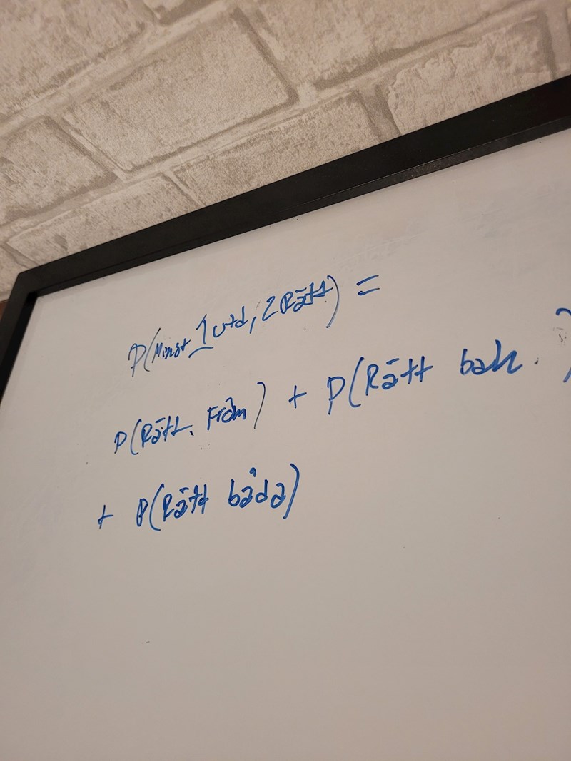 Har försökt addera ihop sannolikheten för p(Rätt från två första), p(rätt på två sista) och p(rätt från båda hållen)