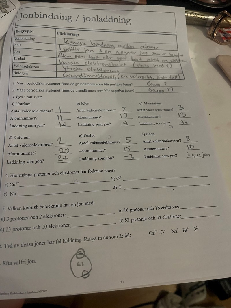 Och frågan är väll hur många protoner och elektroner jonen har?