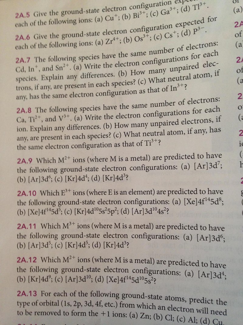 jag förstår inte frågan - jag tänkte, men tyckte Dock det var en märklig fråga på vår nivå så som jag tänkte den, de menade att ground state var hur el.konfigurationen ser ut när den inte är en jon. Men jag fick tex på den första Mn med 25 elektroner - men svaret skulle vara Co^2+
