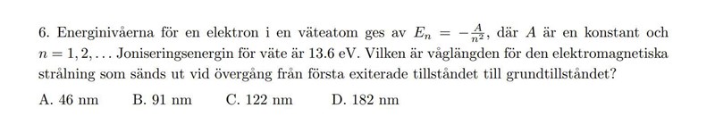 Börja med att rita upp en skiss över väteatomens energinivåer. Lägg upp bilden här.