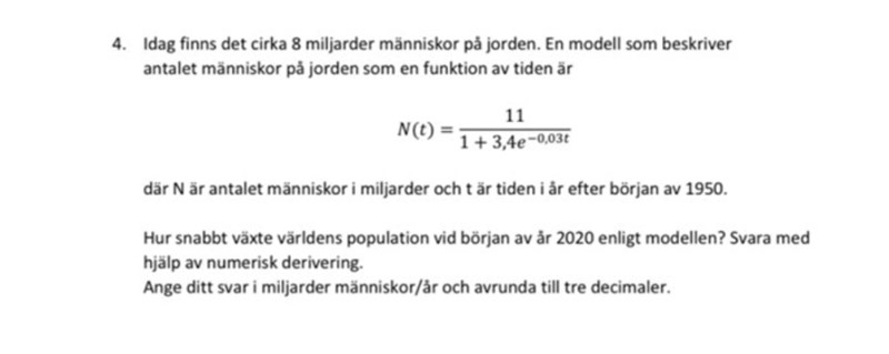 Jag vet att man först ska derivera funktionen N(t). Därefter beräkna f’(70) för att få svaret. Däremot vet jag inte hur jag ska derivera funktionen N(t)?