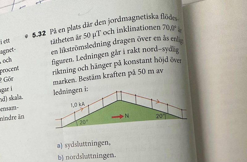 Det jordmagnetisks fältet på 50uT träffar sydsluttningen vinkelrätt