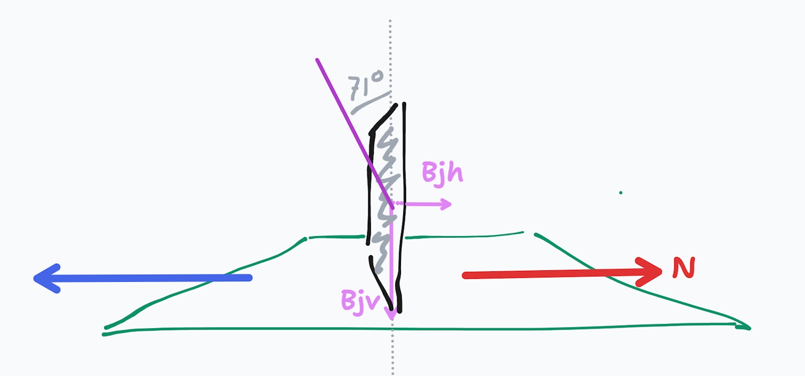 Ritande är inte min starka sida, men här har jag försökt illustrera hur det ser ut om du roterar väggen så att den går i öst-västlig riktning. Då har du en komposant Bjh som skär väggen och flödet blir >0.