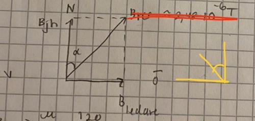 ja vi har Bjh, Bjv och sen jordmagnetiska fältet som går diagonalt gentemot dessa. men jag förstår inte hur strömriktningen påverkar och hur man ritar sen,