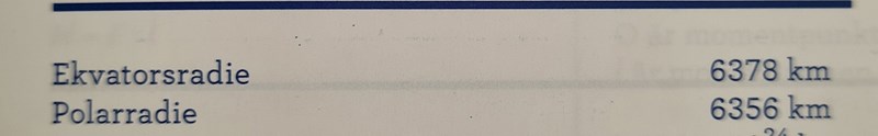 Om det inte står i uppgiften vilket värde på jordradien som du ska använda, eller att det inte står i uppgiften på vilken plats på jordklotet uppgiften utspelas så att man förstår vilket värde som ska användas, så kan du använda något av dem. Förklara i redovisningen vilket värde du har använt och var du har fått det ifrån.