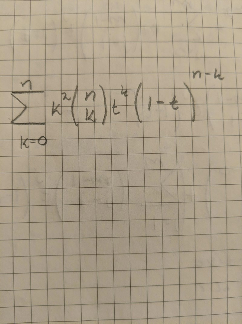 (Summa där k=0 går till n)k^2*(C(n,k))*t^k*(1-t)^(n-k)