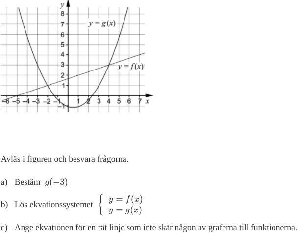 på deluppgift c har jag kommit fram till att m-värdet kan t.ex vara -2 men jag vet hur jag ska hitta k-värdet. Jag skrev den här funktionen y = 0,25x - 2 (det är inte rätt och jag vet inte varför)